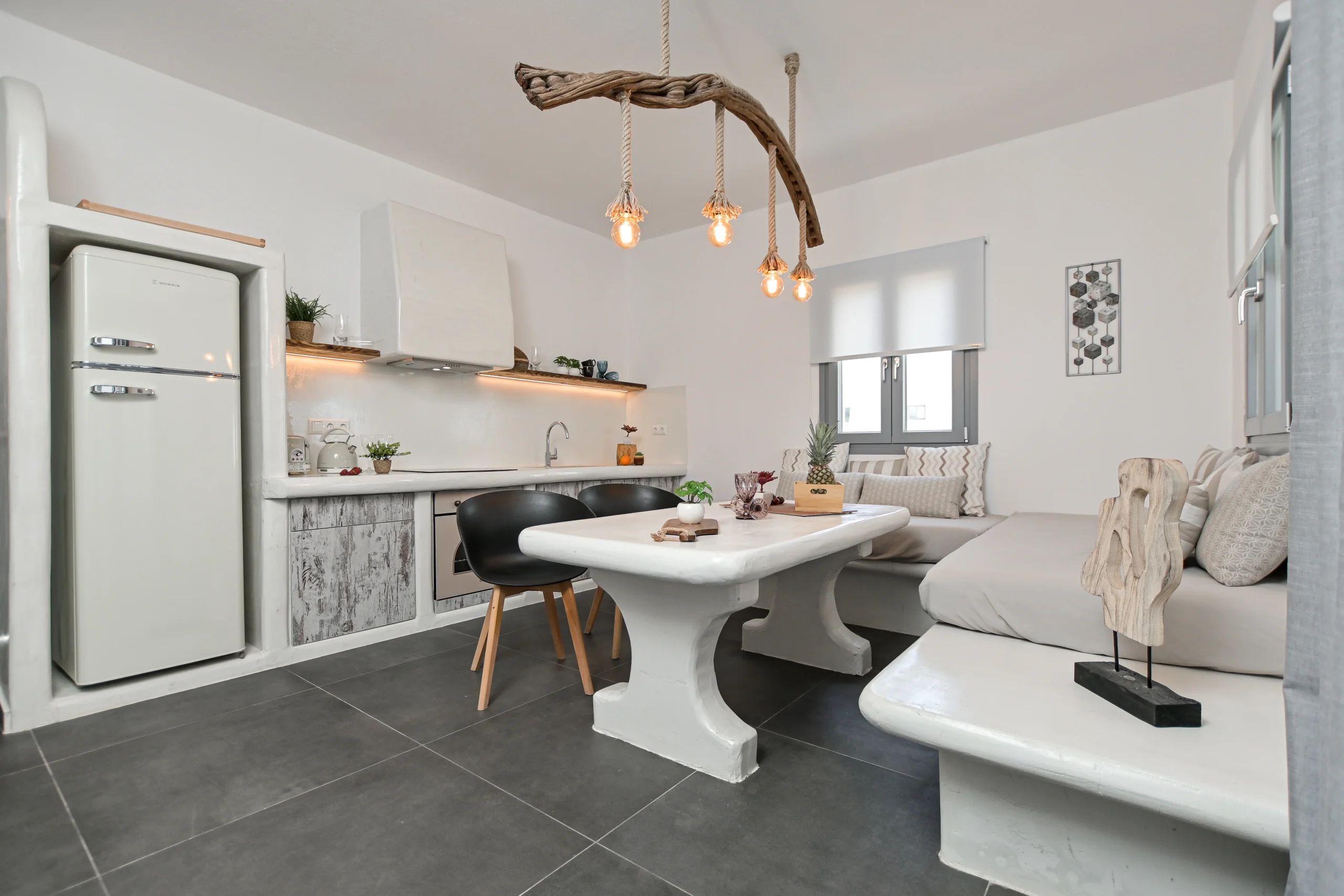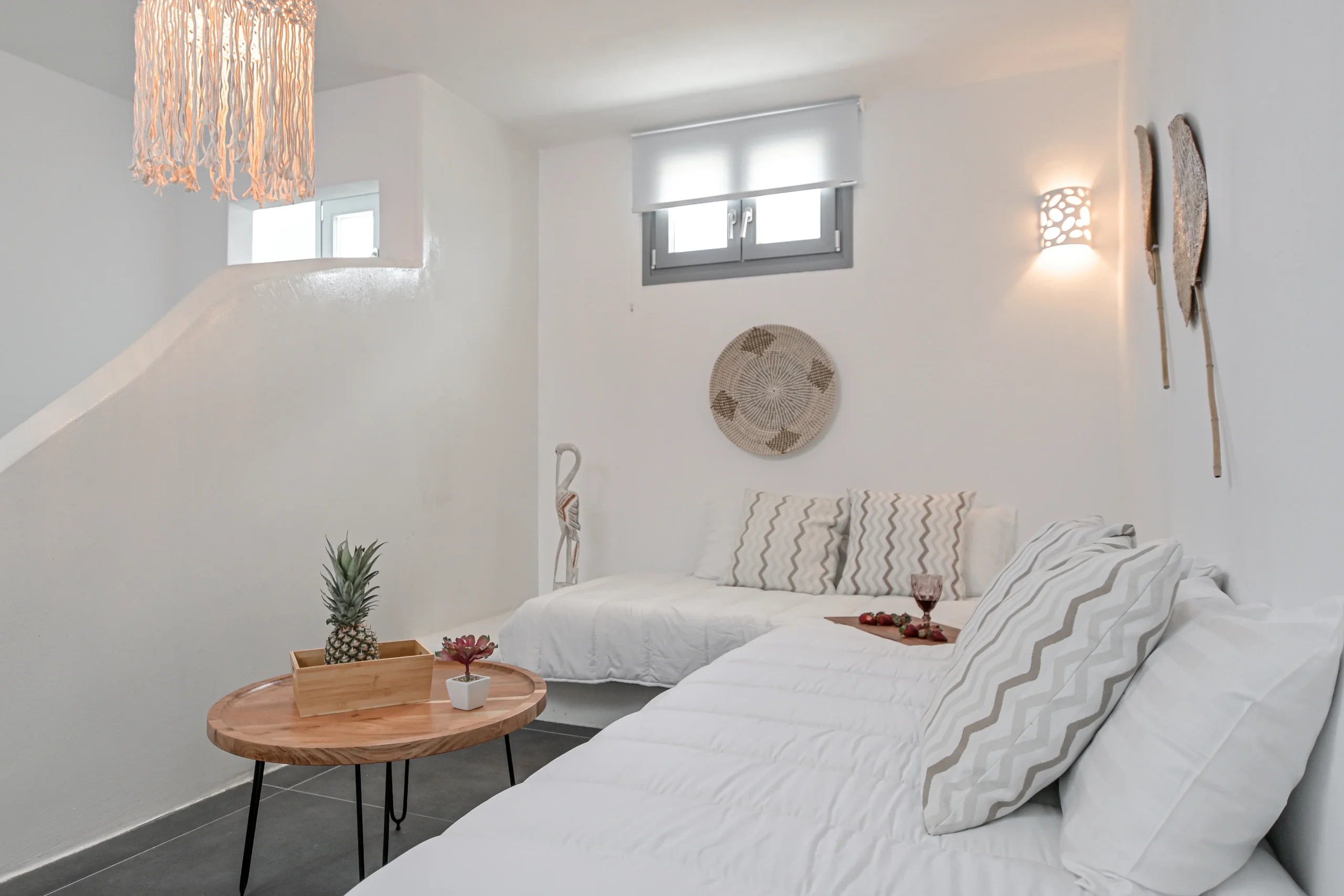 Η βίλα White Cocoon IV, είναι μια γοητευτική βίλα που έχει σχεδιαστεί προσεκτικά ως ένα γαλήνιο καταφύγιο. Ένα ευρύχωρο μπαλκόνι κοσμεί αυτή τη βίλα, προσφέροντας ένα ευχάριστο μέρος για να χαλαρώσετε και να απολαύσετε το γύρω περιβάλλον. Στον επάνω όροφο, αφεθείτε στη χαλάρωση μέσα στο φιλόξενο καθιστικό που είναι εξοπλισμένο με κλιματισμό, τηλεόραση και δύο άνετους καναπέδες. Η πλήρως εξοπλισμένη κουζίνα και η τραπεζαρία παρέχουν όλες τις σύγχρονες ανέσεις. Στον ίδιο όροφο υπάρχει ένα υπνοδωμάτιο με διπλό κρεβάτι και ένα μπάνιο με δροσιστικό ντους. Ο κάτω όροφος παρέχει ένα πλυντήριο ρούχων και ένα μπάνιο με ντους. Στον κοινόχρηστο χώρο υπάρχουν δύο μονά κρεβάτια και ένα ψυγείο, ενώ το υπνοδωμάτιο είναι προσεκτικά επιπλωμένο με δύο μονά κρεβάτια και ένα διπλό κρεβάτι. Κάθε δωμάτιο διαθέτει κλιματισμό, τηλεόραση και άνετα κρεβάτια, εξασφαλίζοντας εξατομικευμένη άνεση. Το White Cocoon IV εξασφαλίζει μια αξέχαστη και ήρεμη διαμονή, συνδυάζοντας άψογα την άνεση με τη γαλήνη.