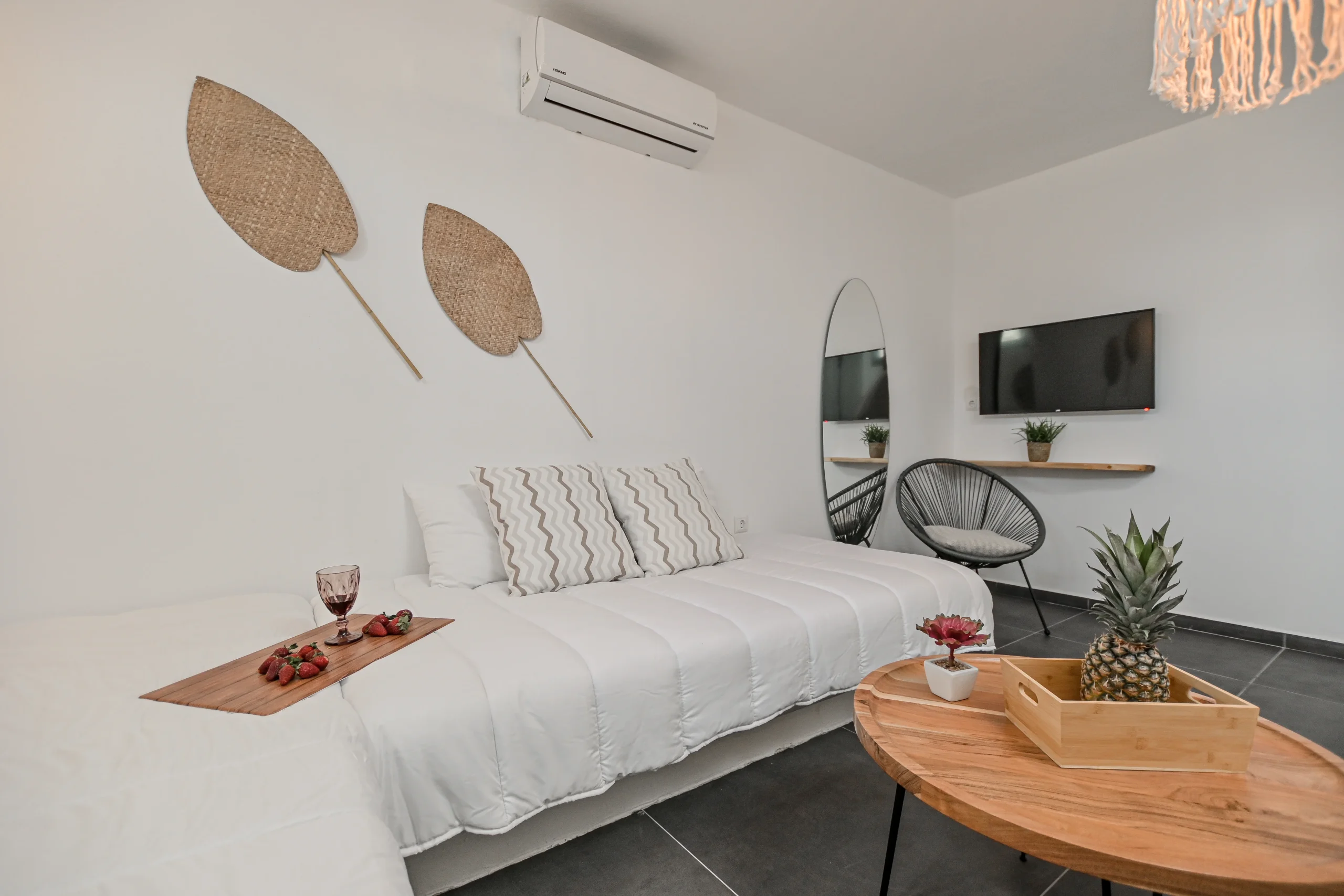 - 2 μονοί καναπέδες-κρεβάτια στο σαλόνι